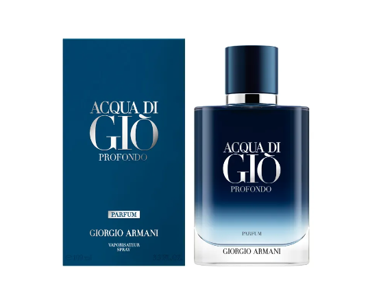 Acqua di Giò Profondo Giorgio Armani EDP – Uma fragrância aquática e amadeirada com notas de bergamota, coração de alecrim e lavanda, e base de patchouli e almíscar.